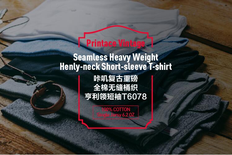 全棉无缝桶织亨利领短袖T恤男夏季