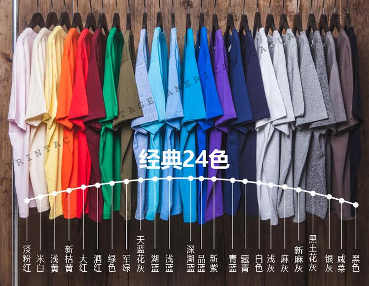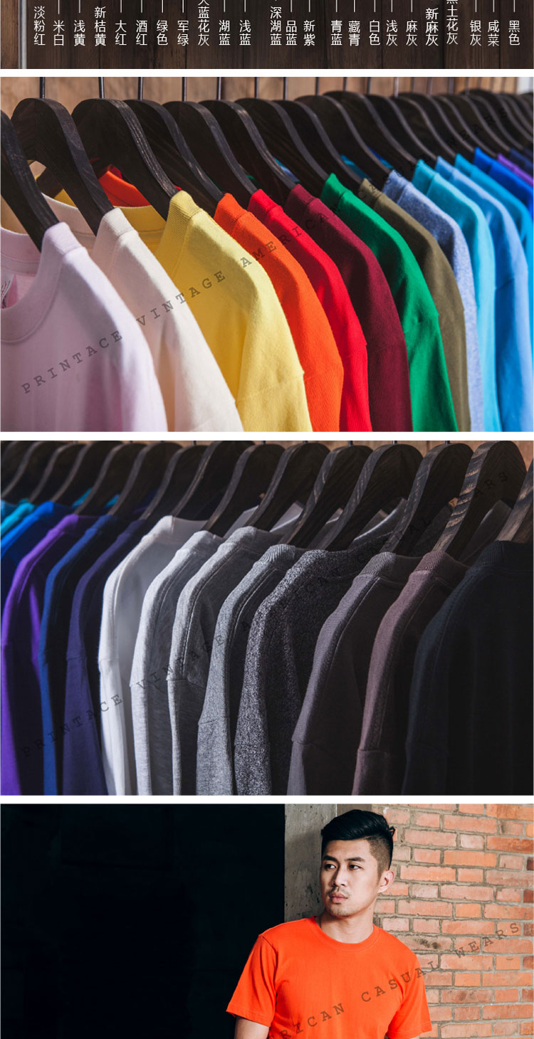 复古全棉24色重磅无缝桶织圆领短袖T恤男夏