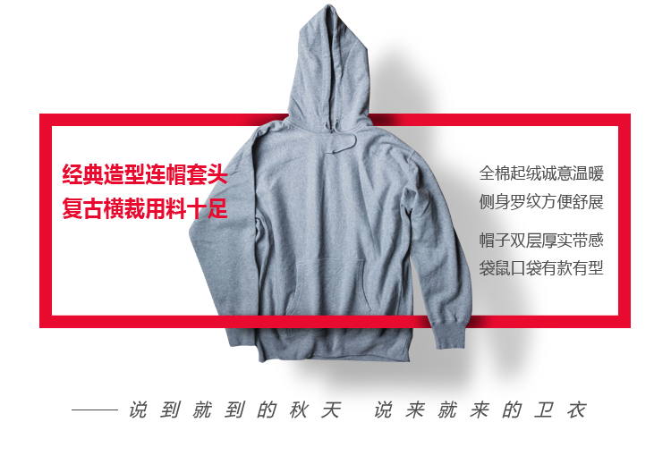 全棉起绒保暖连帽口袋卫衣